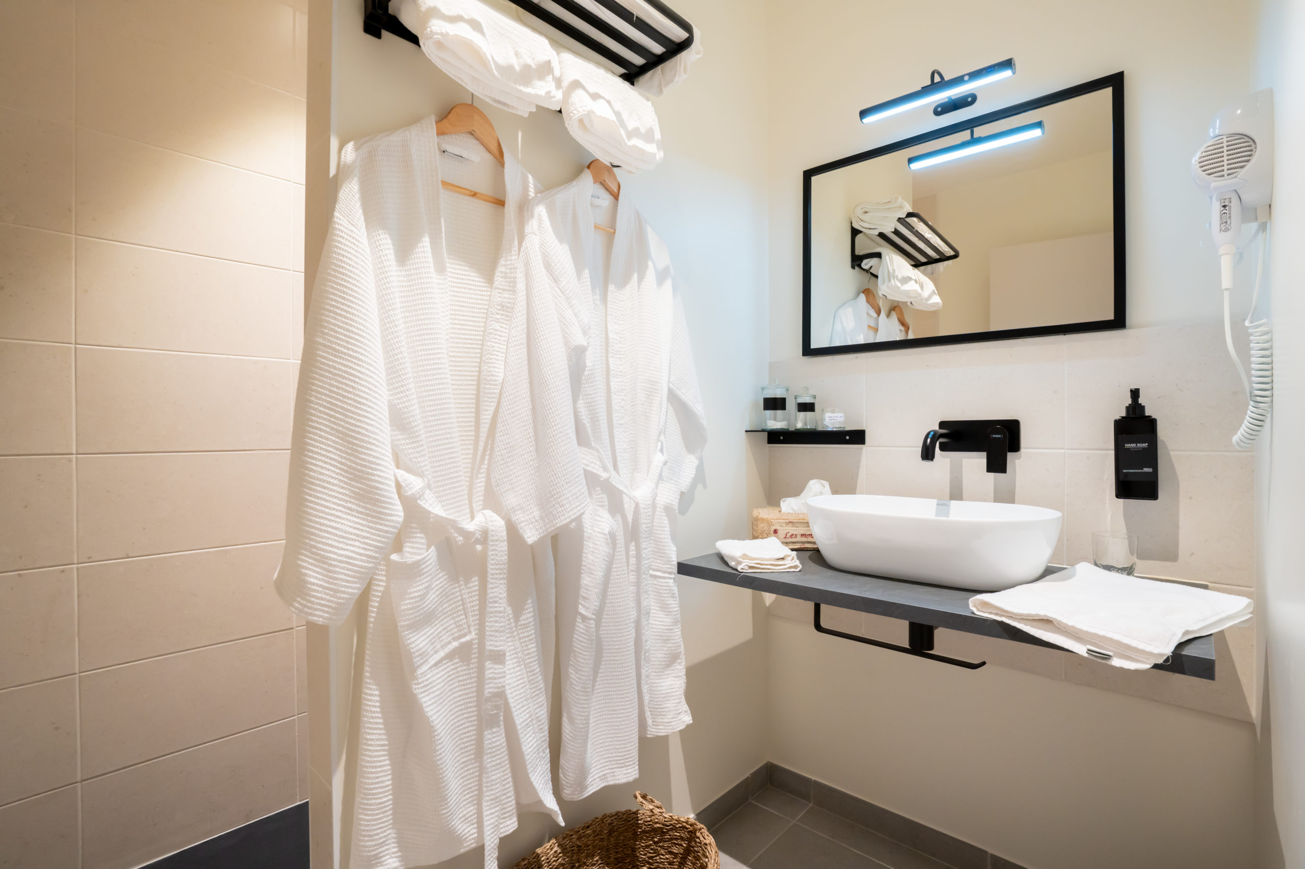 Possibilité de communiquer avec une autre chambre équipée avec des portes individuelles pour accéder à l’extérieur, idéal pour des familles.